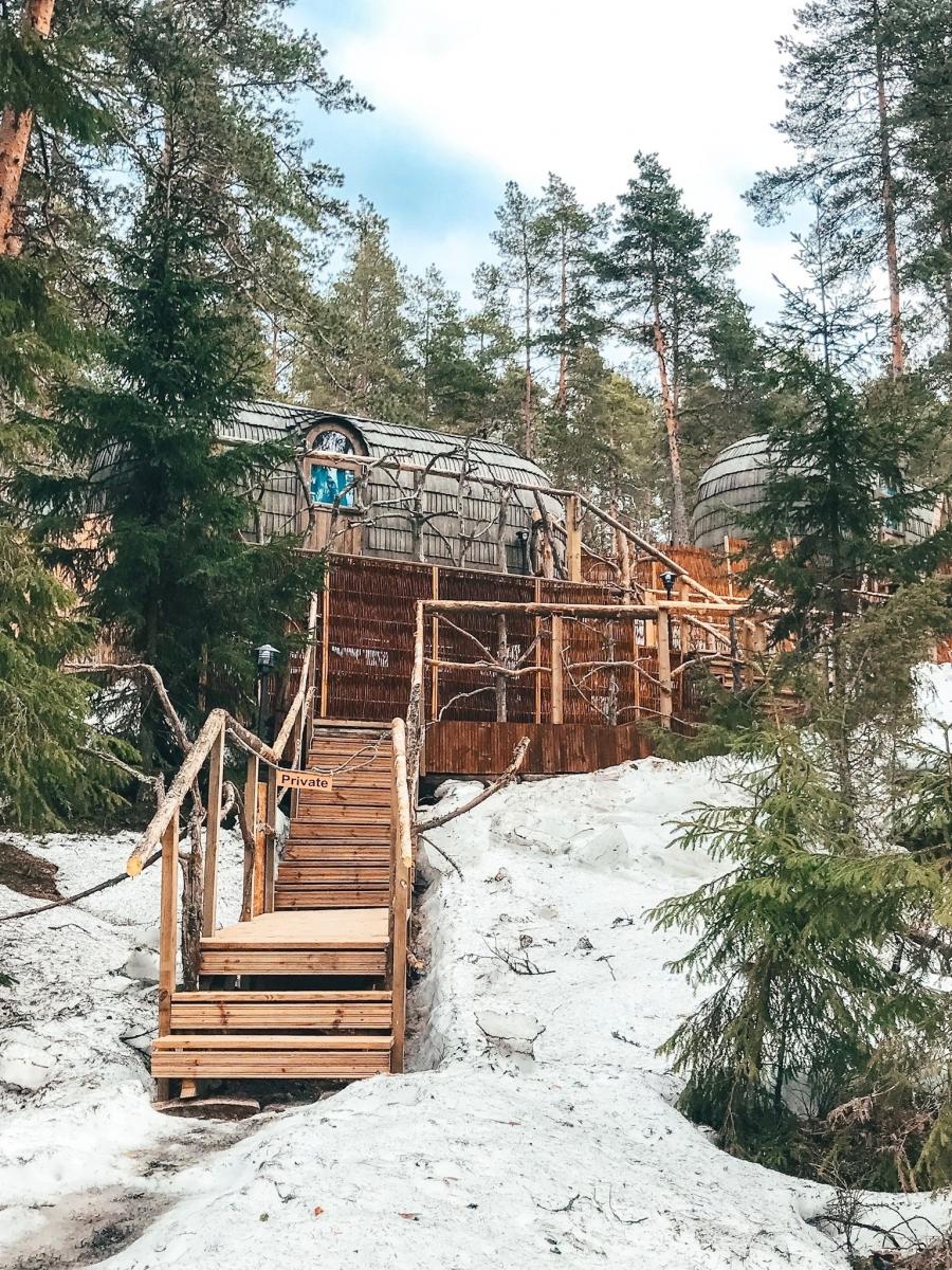 För gäster som vill bli ett med naturen, är Igluhut ett måste. Dessa trähus är belägna i Esbo i södra Finland och är byggda bland de snötäckta tallarna i Nuuksio Reindeer Park. Här har du möjligheten att mata och ta bilder av renar från din stuga – en unik upplevelse att verkligen vara ett med naturen. En stuga kostar från cirka 3700 kronor per natt.
