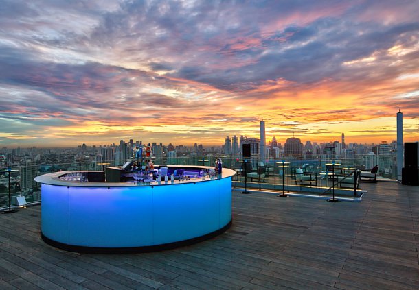 Det finns gott om takbarer i Bangkok men Vertigo/Moon Bar måste räknas till klassikerna. Hela taket på hotell Banyan Tree står till ditt förfogande och här kan du både äta middag i Vertigo-restaurangen under bar himmel eller bara njuta av en drink i Moon Bar. Eftersom det här är ett av Bangkoks mest välkända tak kommer du att få trängas med många andra turister och du kommer inte direkt att känna dig som en av få utvalda som hittat hit, men det gör ingenting. Här hittar du ett mycket blandat klientel, även om Banyan Tree är en exklusiv hotellkedja som gärna ser att man klär upp sig inför ett besök. Priserna är höga för att vara i Bangkok, men det är vad man kan förvänta sig av ett 5-stjärnigt hotell. Utsikten är givetvis magnifik och du kommer garanterat att få en riktig lajkraket på Instagramkontot.