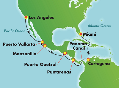 Har du också fått lust att upptäcka allt vad Karibien har att erbjuda och kryssa genom Panamakanalen? En resa som är jämförbar med den som presenteras här görs med Norwegian JOY från Los Angeles till Miami eller omvänt – jan. resp. feb. 2020: 16 dagar inkl. Panamakanalen. På resan kan du snorkla i en stilla bukt eller åka på valsafari och leta efter de vandrande gråvalarna vid Cabo San Lucas kust (Mexiko). Ta en avstickare från Stilla havs-kusten till Costa Ricas regnskog och upptäck fantastiska vattenfall, fjärilsträdgårdar och en molnskog. Kryssa genom Panamakanalens många slussar och upplev ett av världens mest betydelsefulla byggtekniska mästerverk. I Cartagena (Colombia) möts du sedan av en stad full av intressant historia.