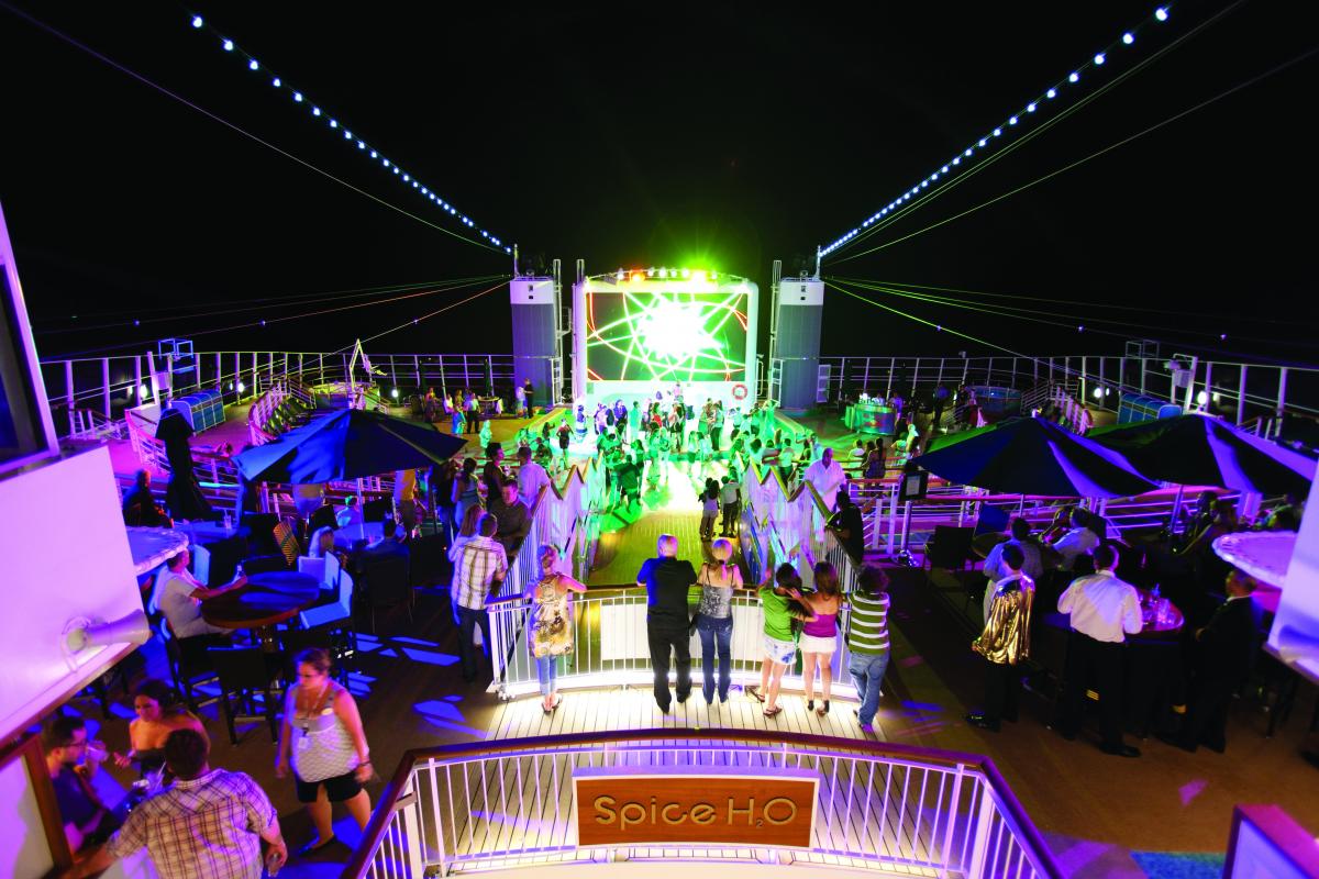Vi är trötta, men väldigt nöjda. Igår dansade vi på Spice H2O, en av våra favoritplatser på skeppet som endast är tillgänglig för gäster över 18 år. På dagarna är det en idyllisk, lugn oas och på kvällarna förvandlas det till ett open air-disco.