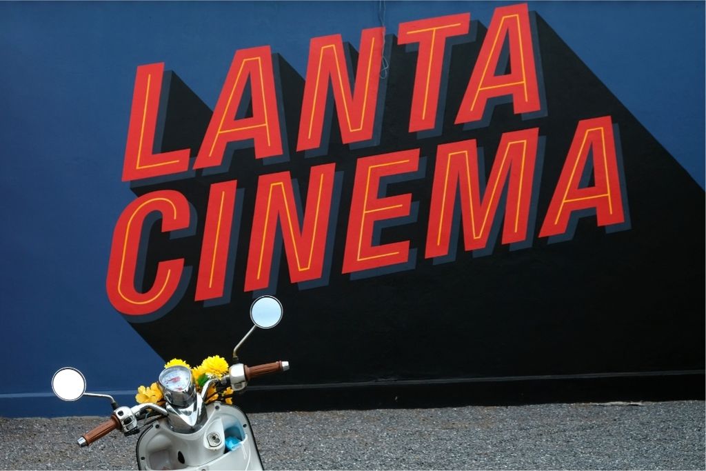 Till och med under pandemin har nya idéer fortsatt att utvecklas på ön. Utomhus-biografen Lanta Cinema har en inbjudande entré med långsmal rosa matta och storartad publikdel med bekväma stolar mellan två barer.