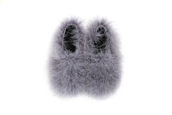 Tofflor i strutsdunfjädrar, Pellobello, ca 400 kr.