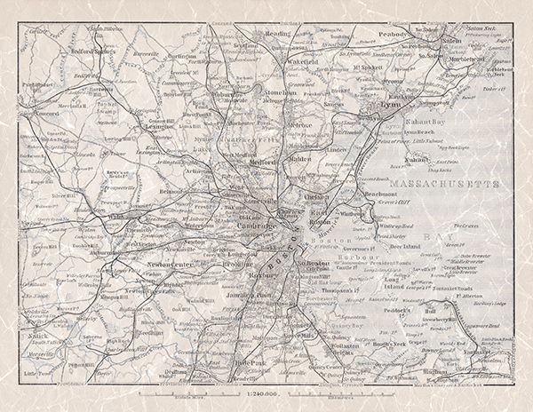 Väggmureal över Boston Harbor, Lexington för Boråstapeter, ca 1 100 kr.