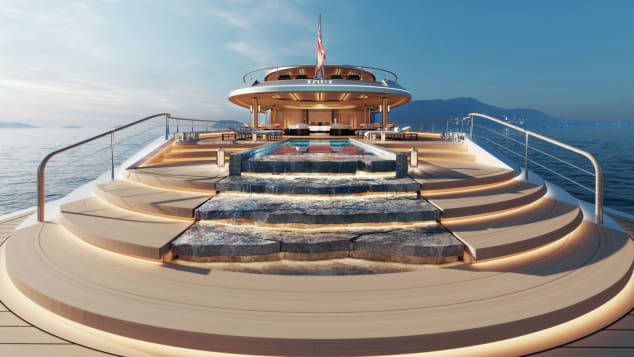 Båten visades nyligen upp på en båtmässa i Monaco. Den 112 meter långa superyachten väckte såklart stor uppmärksamhet hos publiken, enligt nyhetskanalen. Båten har fem däck, där bland annat en infinitypool, ett spa, en helikopterplatta och ett massagerum finns.