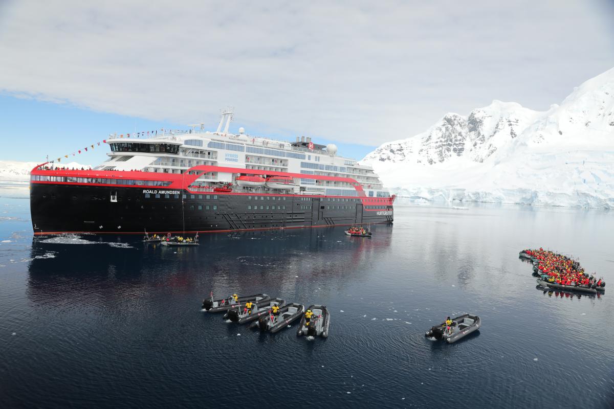 Expeditionskryssningsföretaget Hurtigruten har specialbyggt MS Roald Amundsen för att utforska några av världens mest spektakulära vatten. Det hybriddrivna fartyget hedrar sin legendariska namngivare med att ta gäster till destinationer som Antarktis, Alaska och Nordvästpassagen. Nu är hon också det första fartyget i historien som döpts i Antarktis.