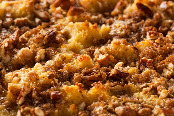 En form av brödpudding med nötter, torkad frukt och ost som äts på långfredagen.
