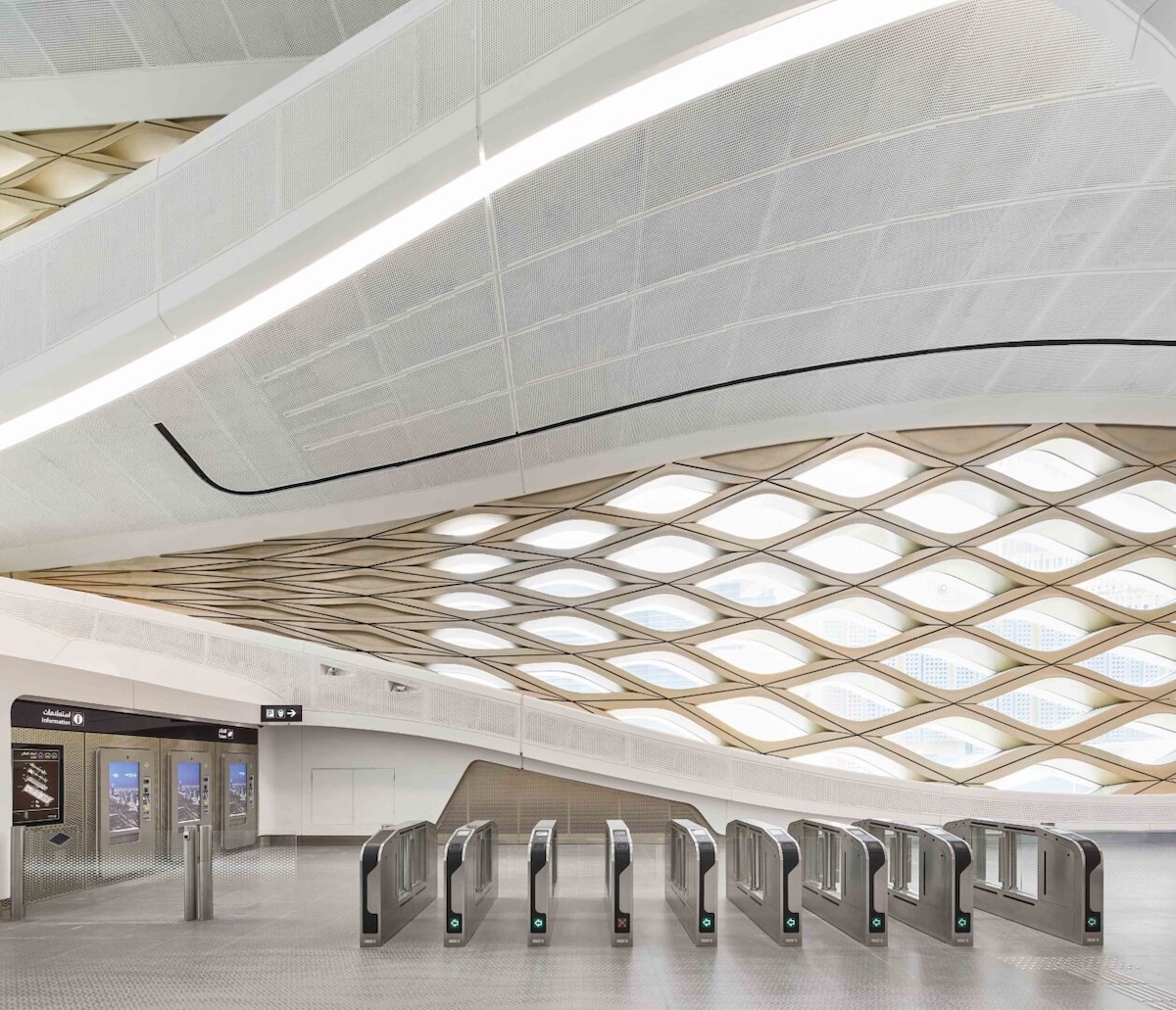 • KAFD Station – signerad Zaha Hadid Architects. En vågig fasad i stål inspirerad av ökensand och hem för en av Riyadh Arts största offentliga skulpturer.