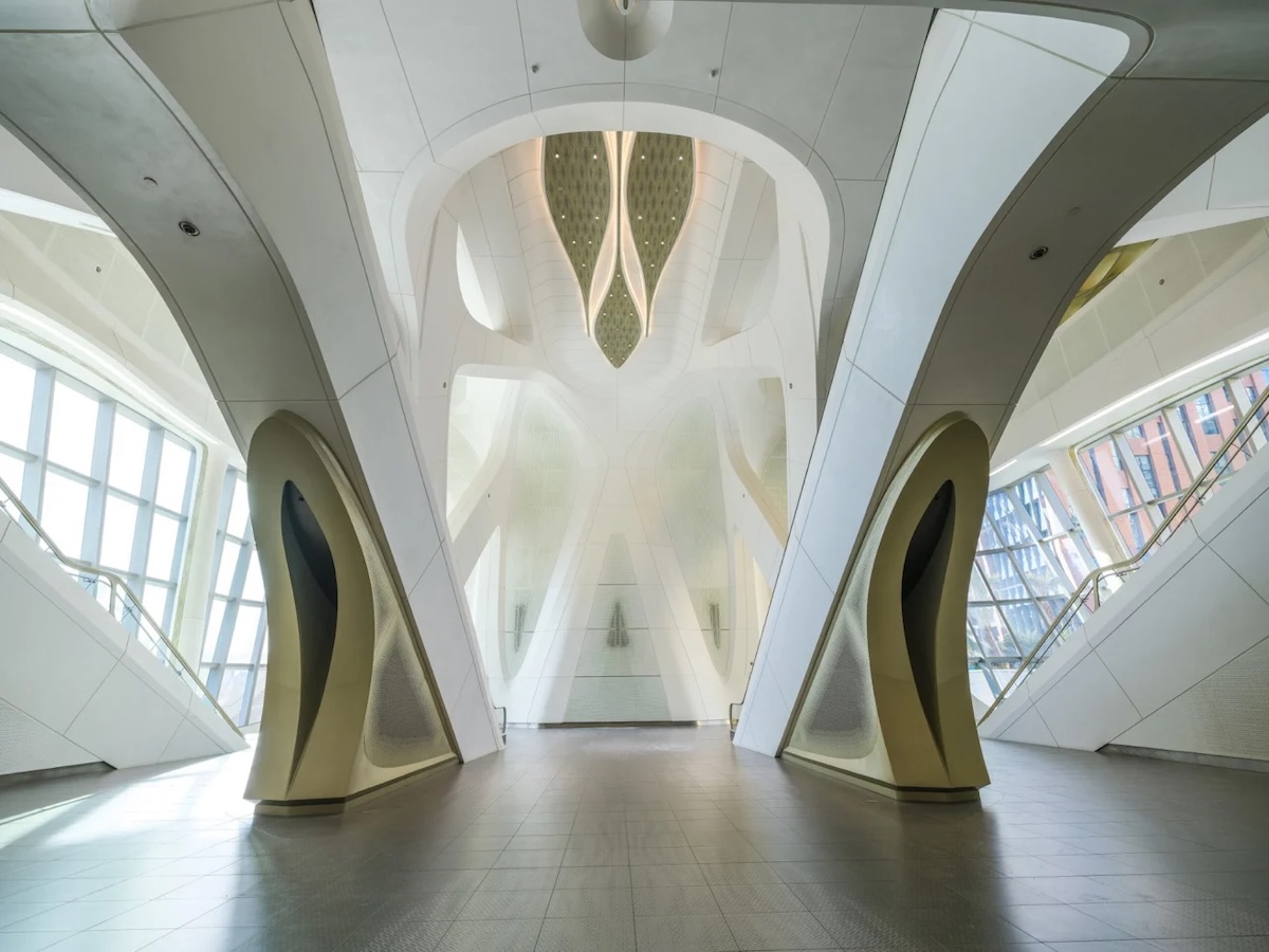 • Qasr Al Hokm – 40 meter under marken, ritad av Snøhetta. Här samsas sju våningar med butiker, konst, inomhusträdgård och spegelklädda valv.