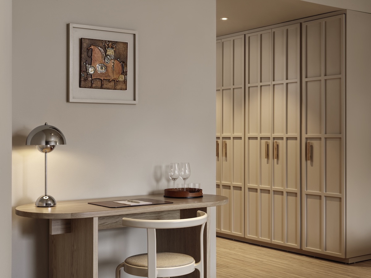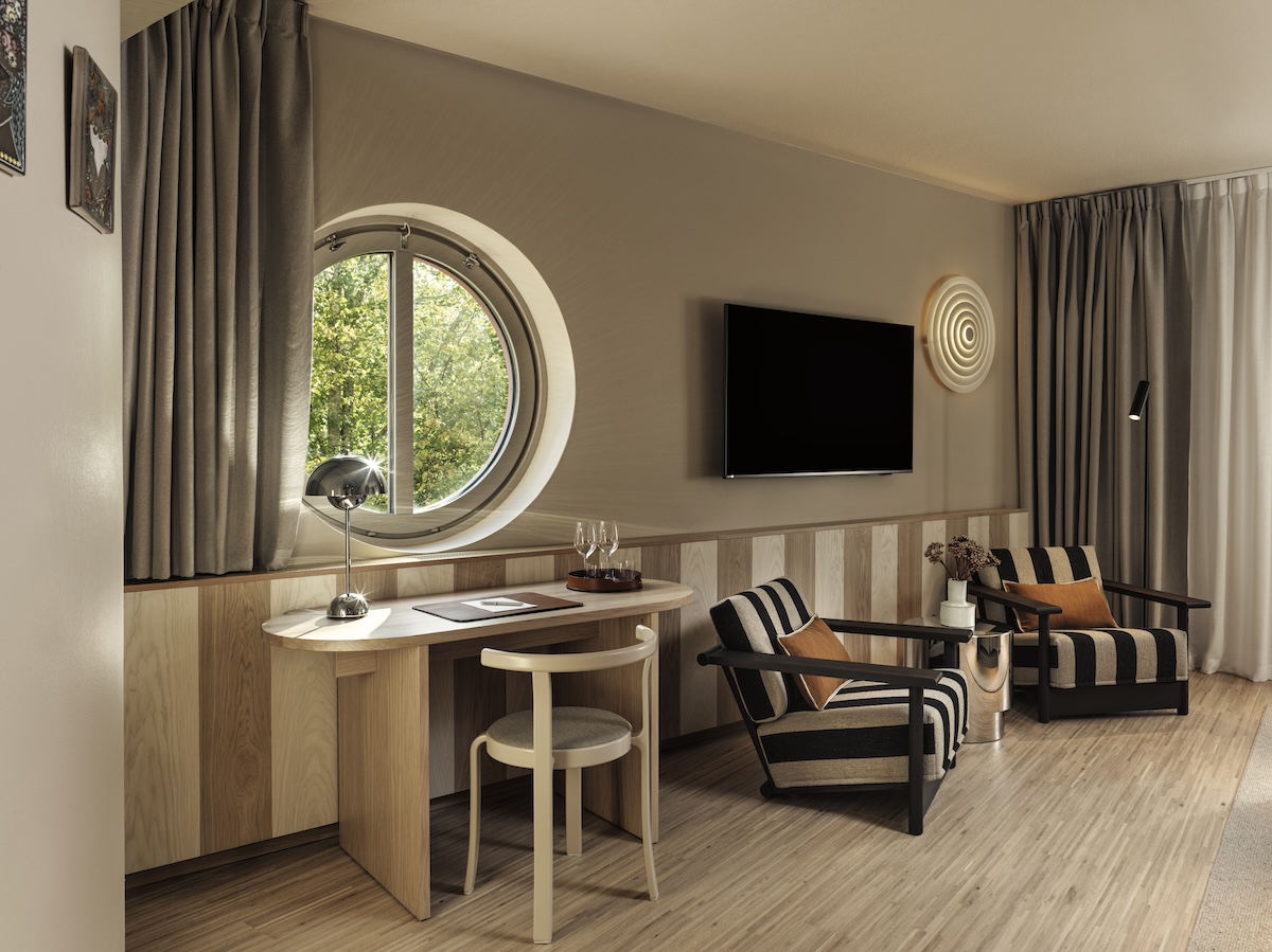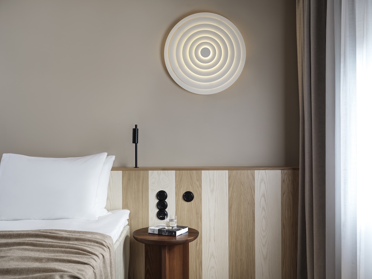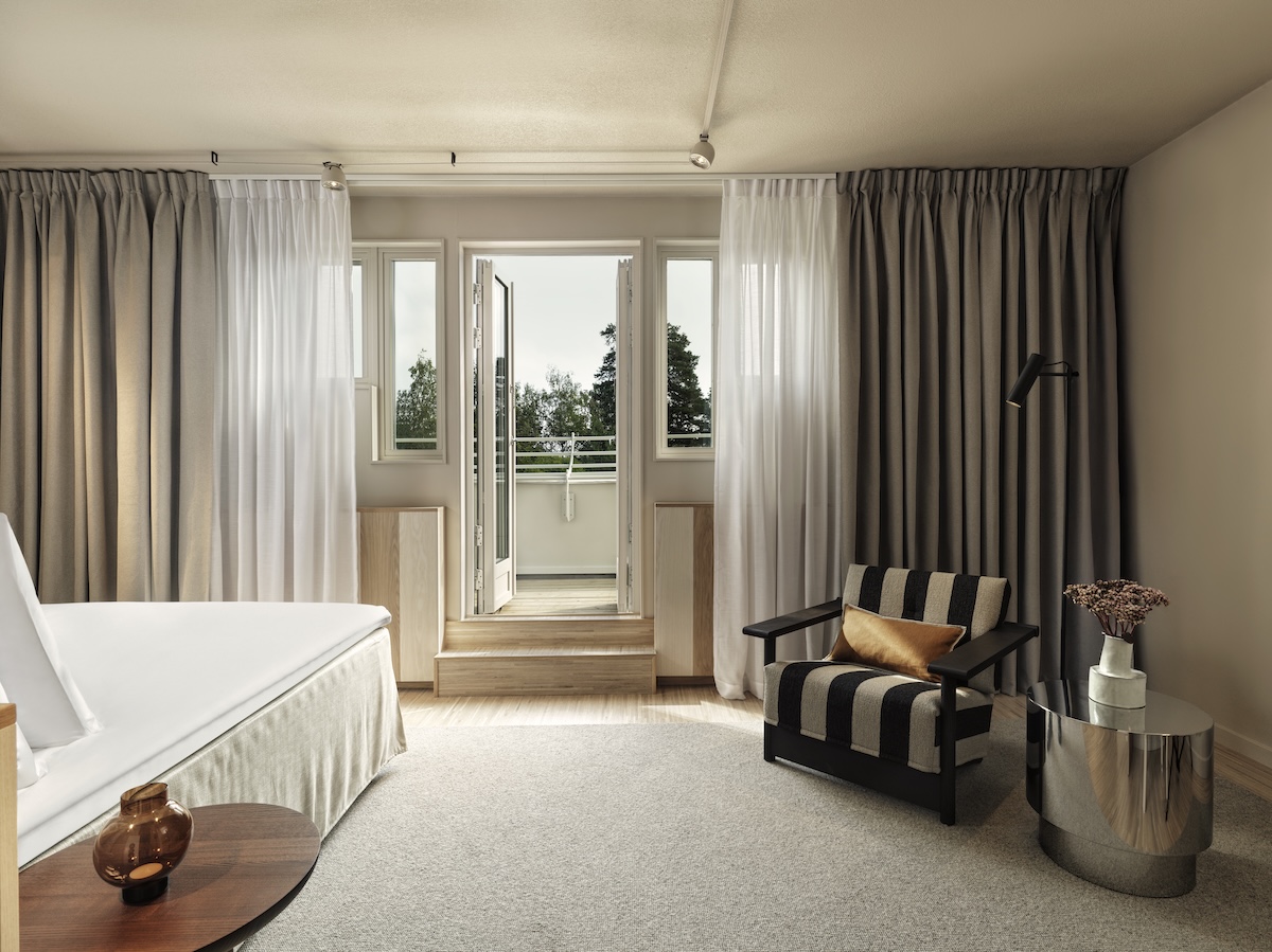 Hotellet rymmer 215 rum och sviter, ritade av Wingårdhs arkitekter. Interiören går i naturtoner med sten, trä och taktila material som hämtar inspiration från den nordiska naturen. Flera av rummen har utsikt över Brunnsviken, andra vetter mot grönskan i Kungliga Hagaparken.