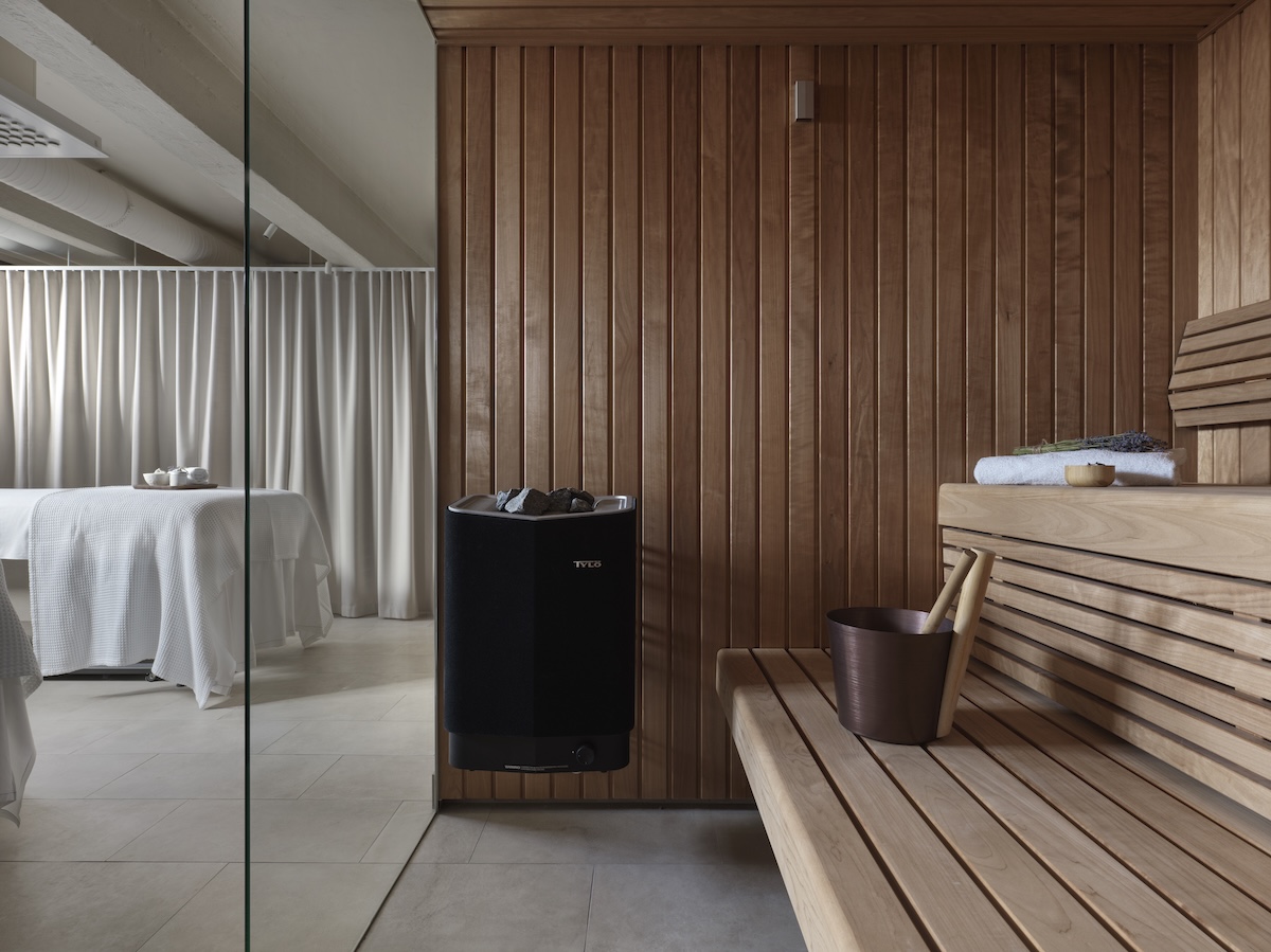 Spaavdelningen på Hagastrand är över 2 500 kvadratmeter stor och utformad med fokus på kontraster: hetta och kyla, tystnad och ljud, tradition och teknologi. Här finns Skandinaviens största snörum, neuroakustiska lounger, rödljusterapi och en Gongmatic-installation som är den första i sitt slag utanför Italien. Mest uppmärksamhet har den stora eventbastun fått, med plats för upp till 60 personer, där basturitualer leds av bastumästare som kombinerar ljus, doft och ljud.