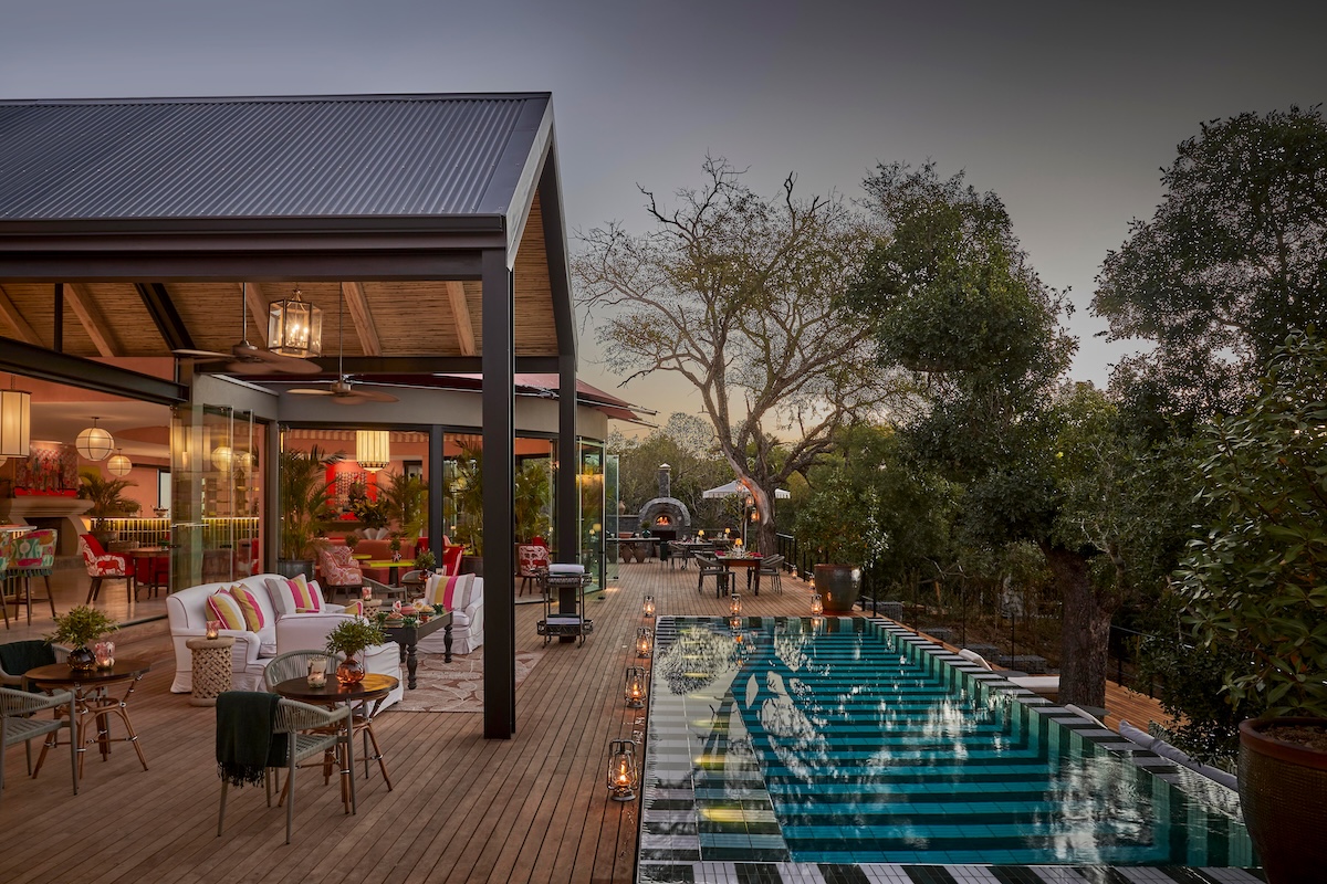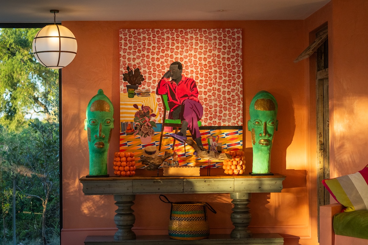Safarilodge designad med maximalism, färg och konst